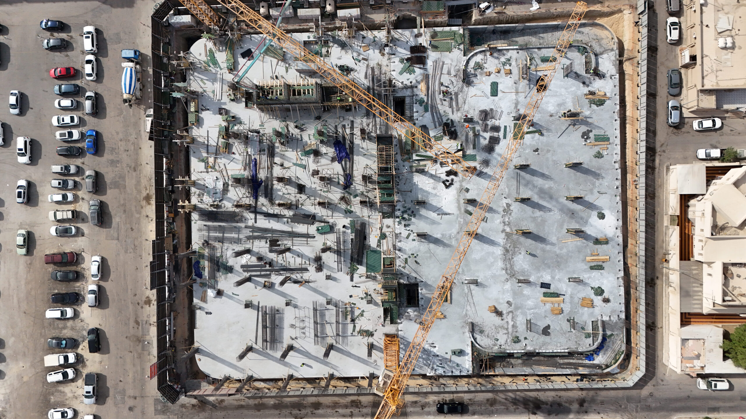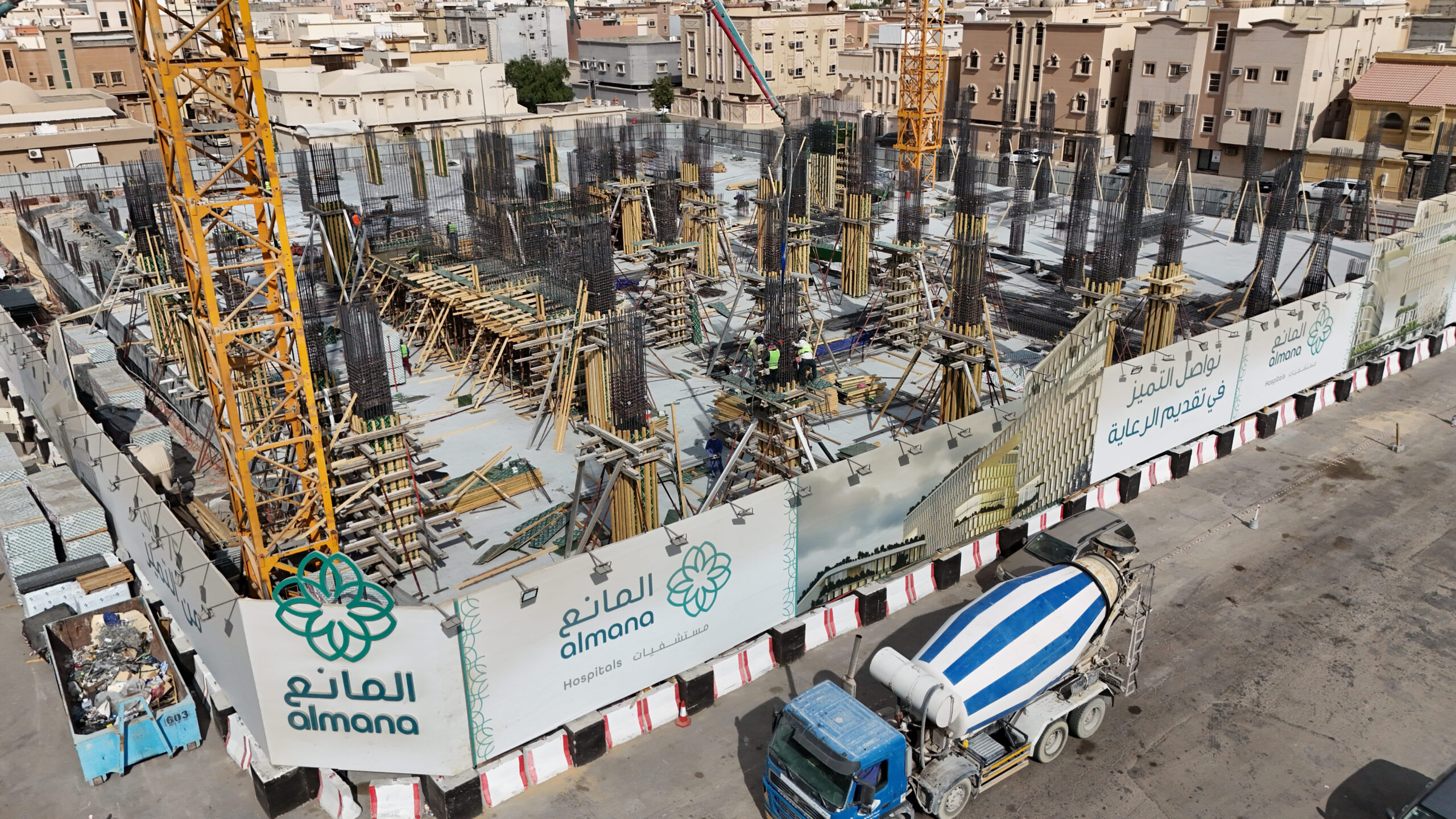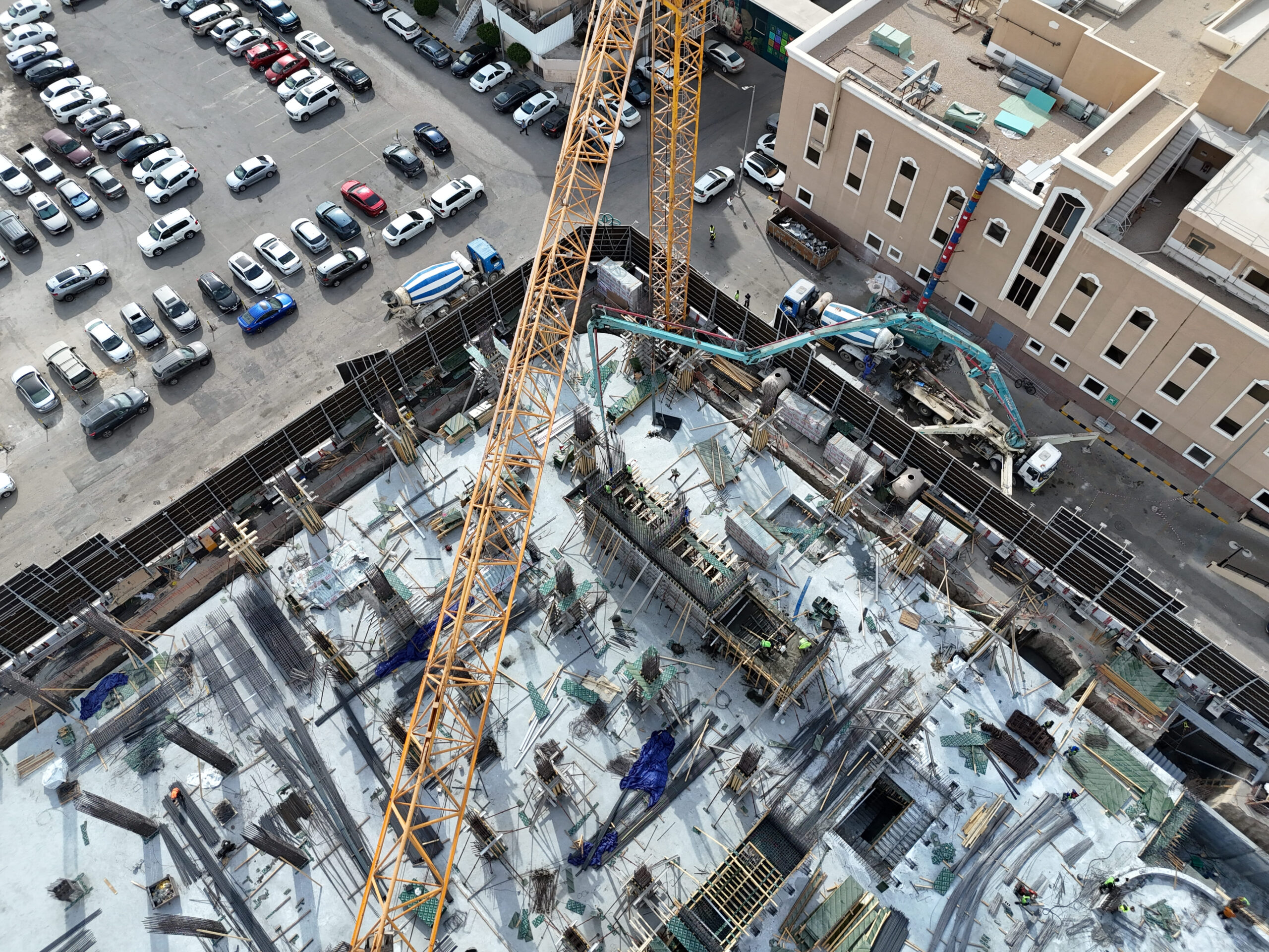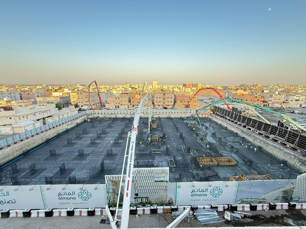 Execution of concrete skeleton, steel structural, post-tension, and excavation works for a medical section (20,000 m² outpatient clinics) and a service section (25,000 m² parking facilities). |